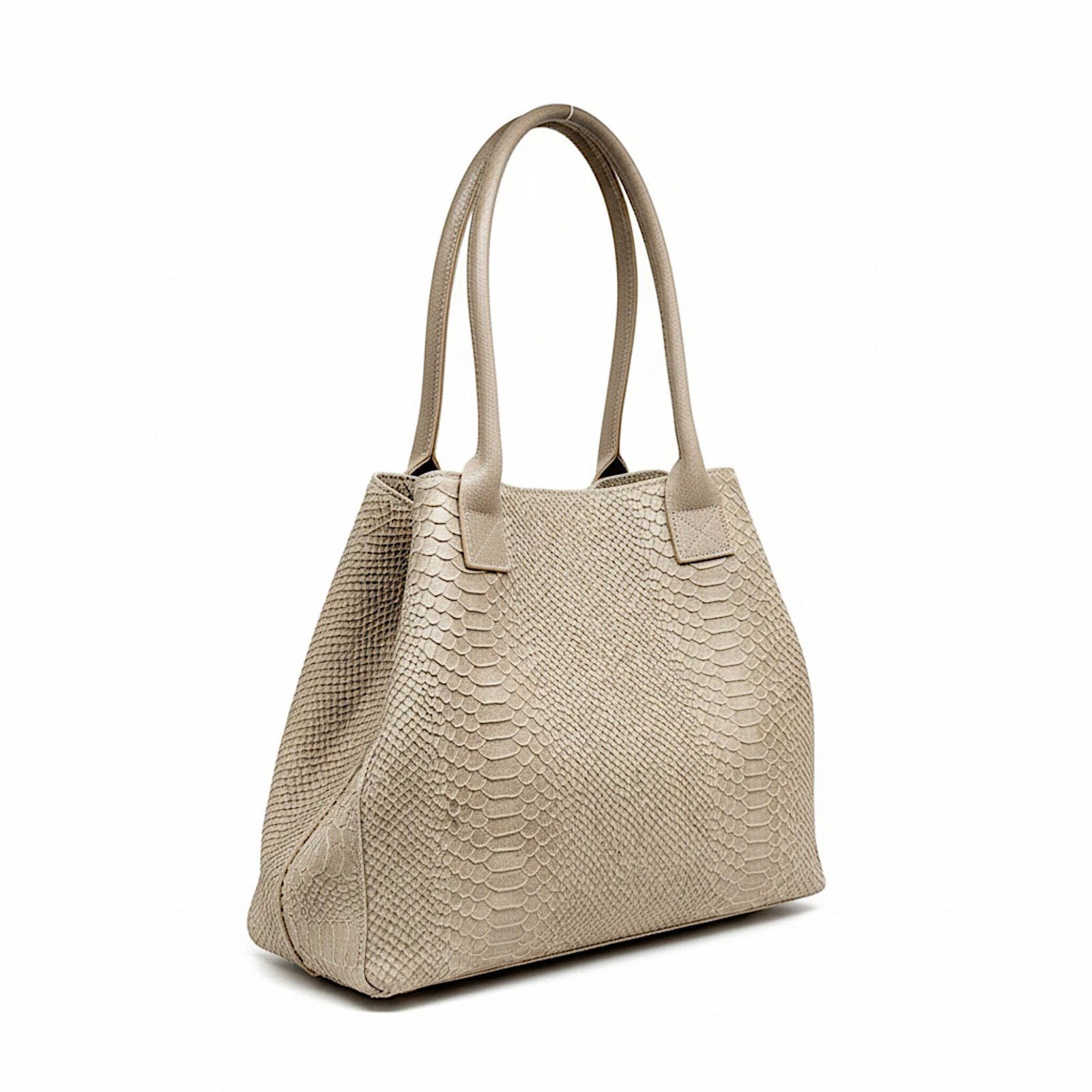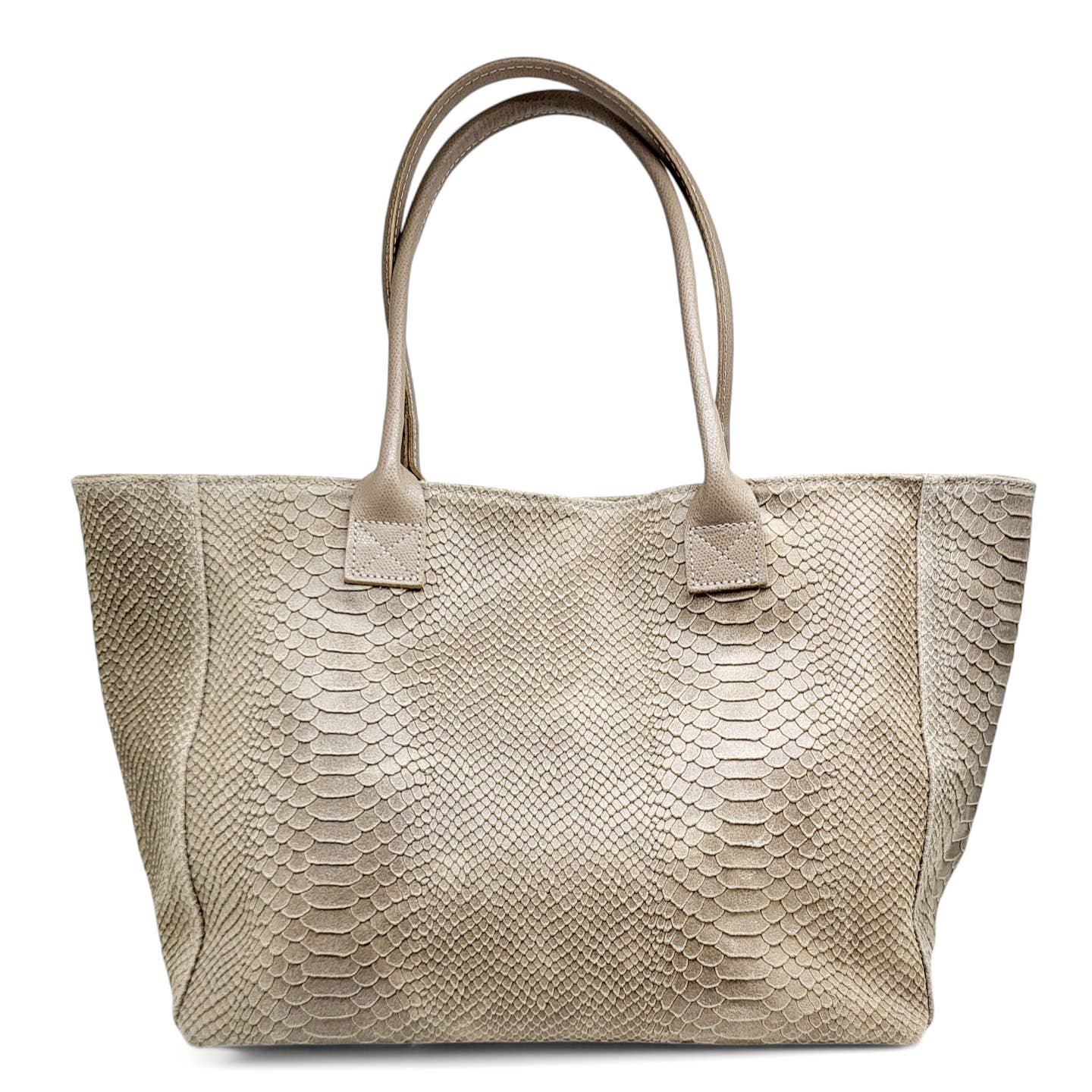 Bolso de hombro de cuero genuino con estampado de pitón, fabricado en Italia. Cuenta con doble asa para facilitar su transporte tanto en la mano como al hombro. El bolso tiene un cierre central con cremallera y un broche magnético. Su compartimento interior único está forrado en tela e incluye un bolsillo con cremallera. El bolso de cuero Lola es un accesorio de moda elegante y moderno, ideal para salir con amigos, para el trabajo o para una cita romántica. Este bolso será tu aliado perfecto para completar tu estilo con sofisticación.